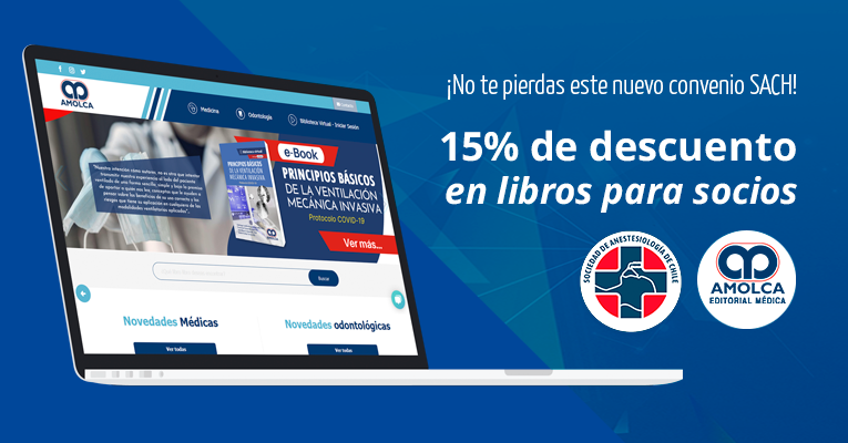 SACH informa que ha suscrito un descuento especial con la Editorial Médica Amolca, para nuestros socios con cuotas al día, Este descuento de 15% se aplica al catálogo de libros de medicina.