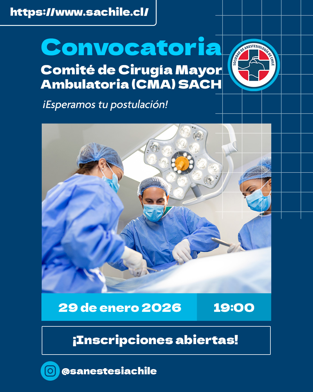 El Comité de Cirugía Mayor Ambulatoria (CMA) de la SACH te invita con entusiasmo a ser parte de un espacio de trabajo colaborativo, orientado al fortalecimiento del conocimiento, la actualización permanente y el desarrollo de investigación en CMA.