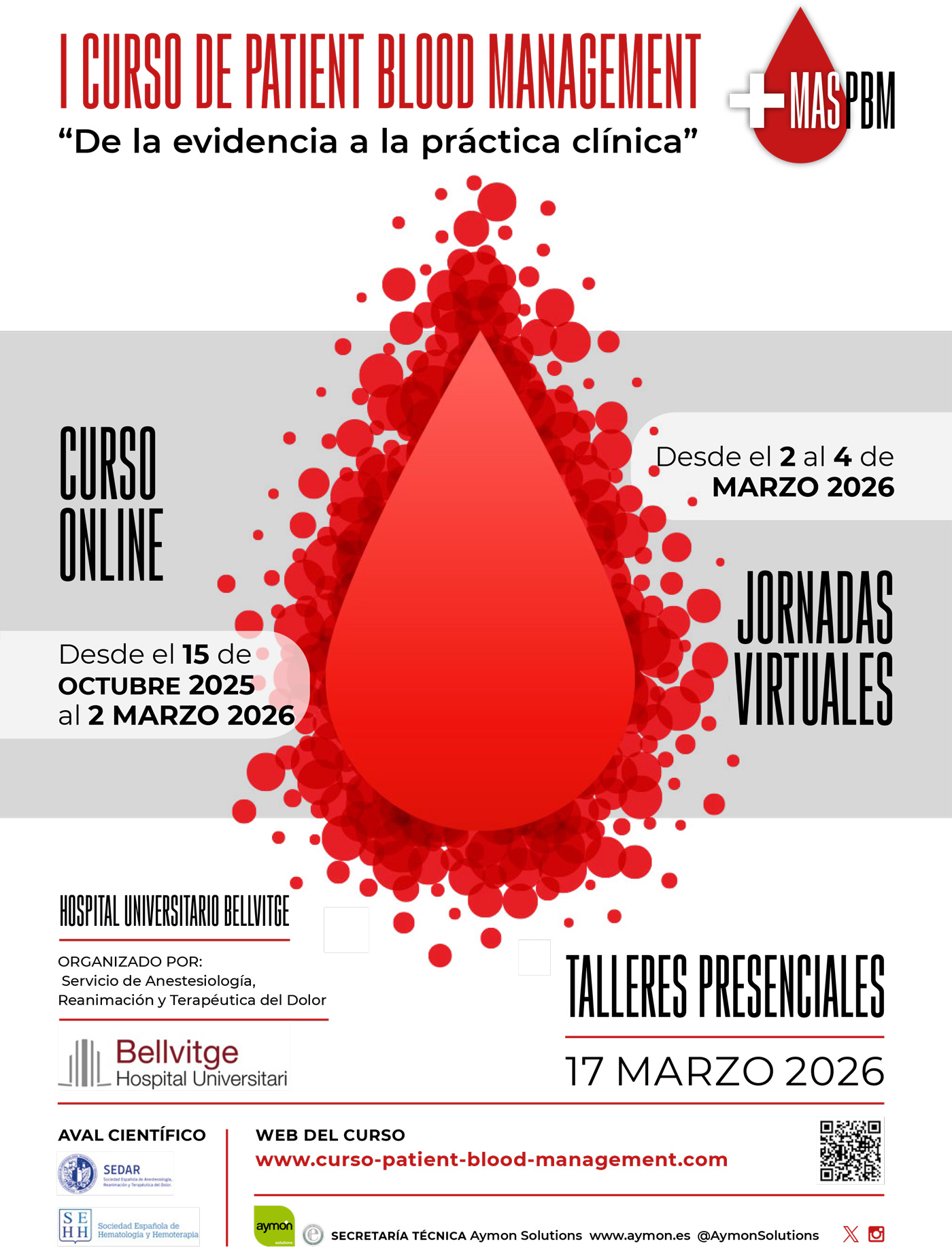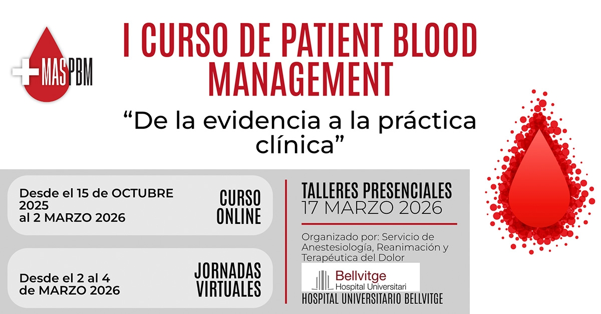El “I Curso de Patient Blood Management: “De la evidencia a la práctica clínica” está organizado por el Servicio de Anestesiología, Reanimación y Terapéutica del Dolor del Hospital Universitario Bellvitge (Barcelona).