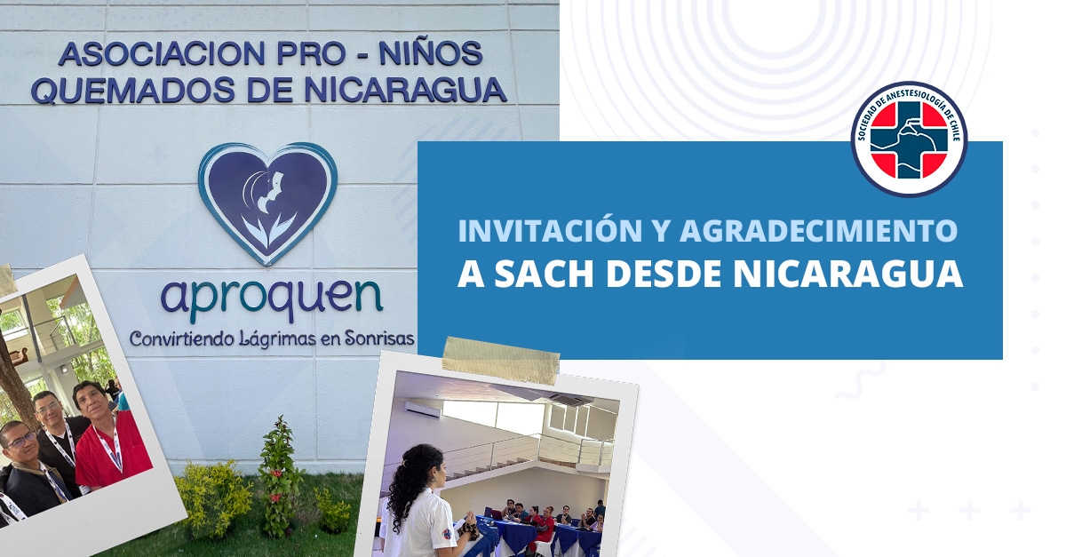 SACH ha recibido un agradecimiento formal de APROQUEN (Asociación Pro-Niños Quemados de Nicaragua, Managua), por su participación académica en el Curso de Soporte Vital Básico y Avanzado Pediátrico, realizado en Managua el 12, 13 y 14 de mayo.