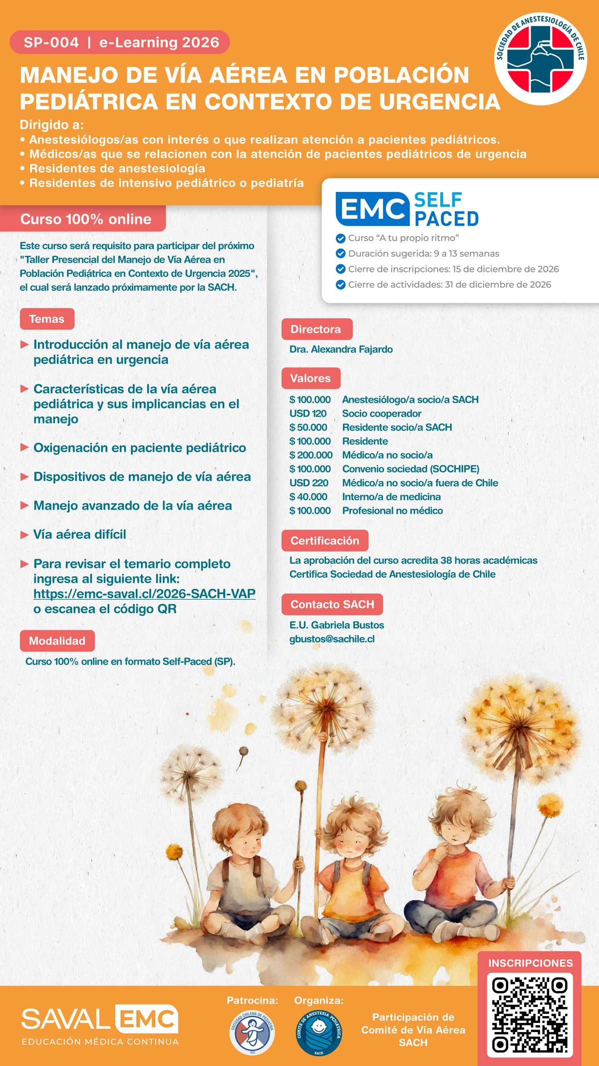 La Secretaría de Educación Continua de SACH invita a participar en el curso e-learning “Manejo de Vía Aérea en Población Pediátrica en Contexto de Urgencias 2026”. Este curso se ofrece en la modalidad 100% online Self-Paced, permitiendo al alumno aprender a su propio ritmo sin las restricciones de fechas límite o horarios predefinidos.