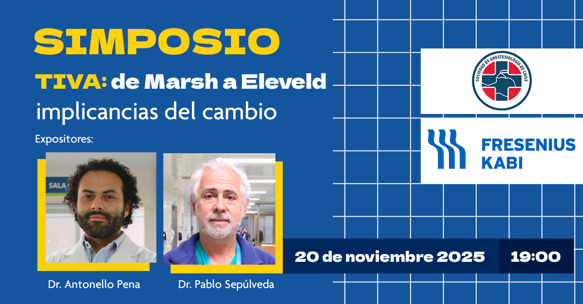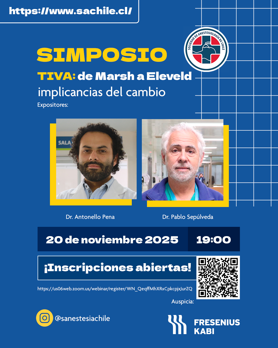 Los invitamos a participar en el simposio “TIVA: de Marsh a Eleveld, implicancias del cambio”, que se realizará el jueves 20 de noviembre desde las 19 hrs., en modalidad sincrónica y con acceso abierto para los interesados. Nos sentimos muy complacidos que el expositor sea el Dr. Pablo Sepúlveda Voullième, Maestro de la Anestesiología Chilena. Es un líder de opinión con larga experiencia y reconocimiento a nivel local y regional como especialista en TIVA, como investigador y académico. El Presentador será el Dr. Antonello Penna.