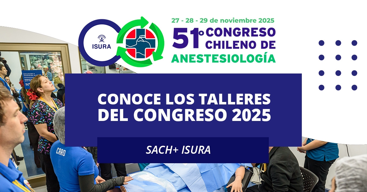 ¡Inscríbete en los talleres SACH e ISURA del 51° Congreso Chileno de Anestesiología! ♻️ Aprovecha y asegura tu cupo aquí