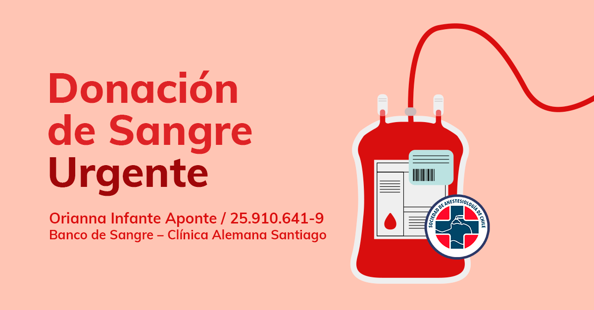 Requerimos donadores de sangre para la Dra. Orianna Infante Aponte, colega anestesióloga y socia de SACH, quien se encuentra aquejada de una enfermedad compleja y será sometida a una cirugía este martes 3 de marzo.
