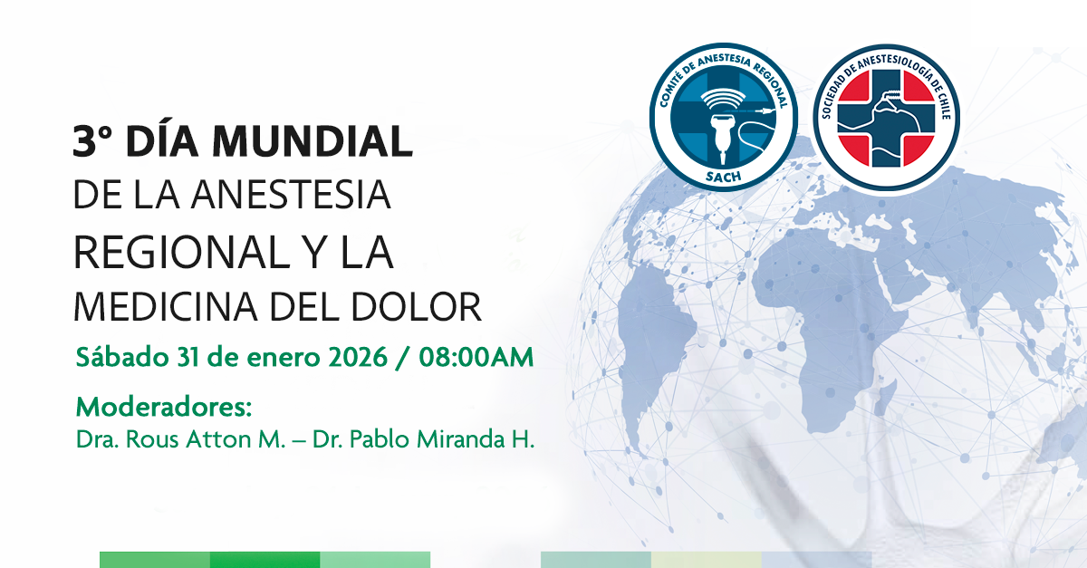 Esta jornada fue una iniciativa de ESRA (European Society of Regional Anæsthesia and Pain) a nivel global y desarrollada por el Comité de Anestesia Regional de SACH en nuestro país con un webinar académico orientado a la actualización y difusión de conocimientos en esta área clave de la especialidad.